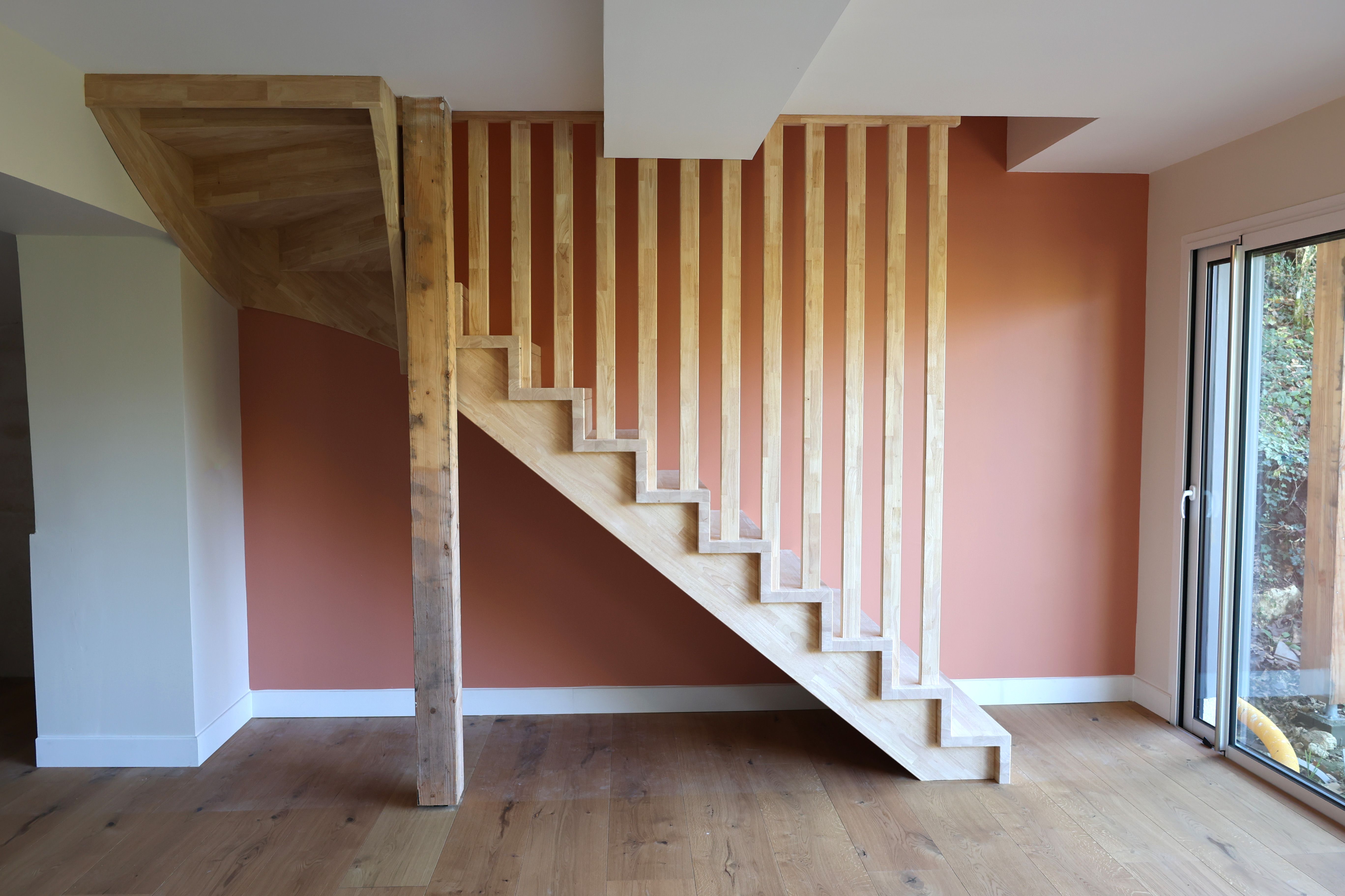Un escalier artisanal se construit entièrement autour du client : dimensions, choix des essences, style, formes, intégration technique, type de garde-corps et finitions ; chaque détail peut être ajusté. Cela devient essentiel dans des configurations complexes comme les trémies irrégulières, les murs anciens, les contraintes d’espace, les niveaux décalés ou encore les besoins esthétiques spécifiques.
