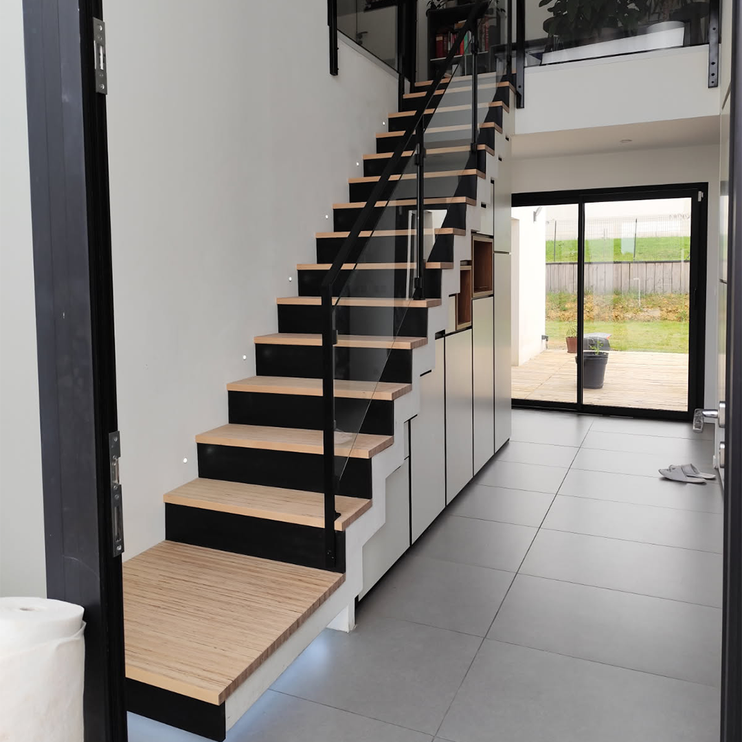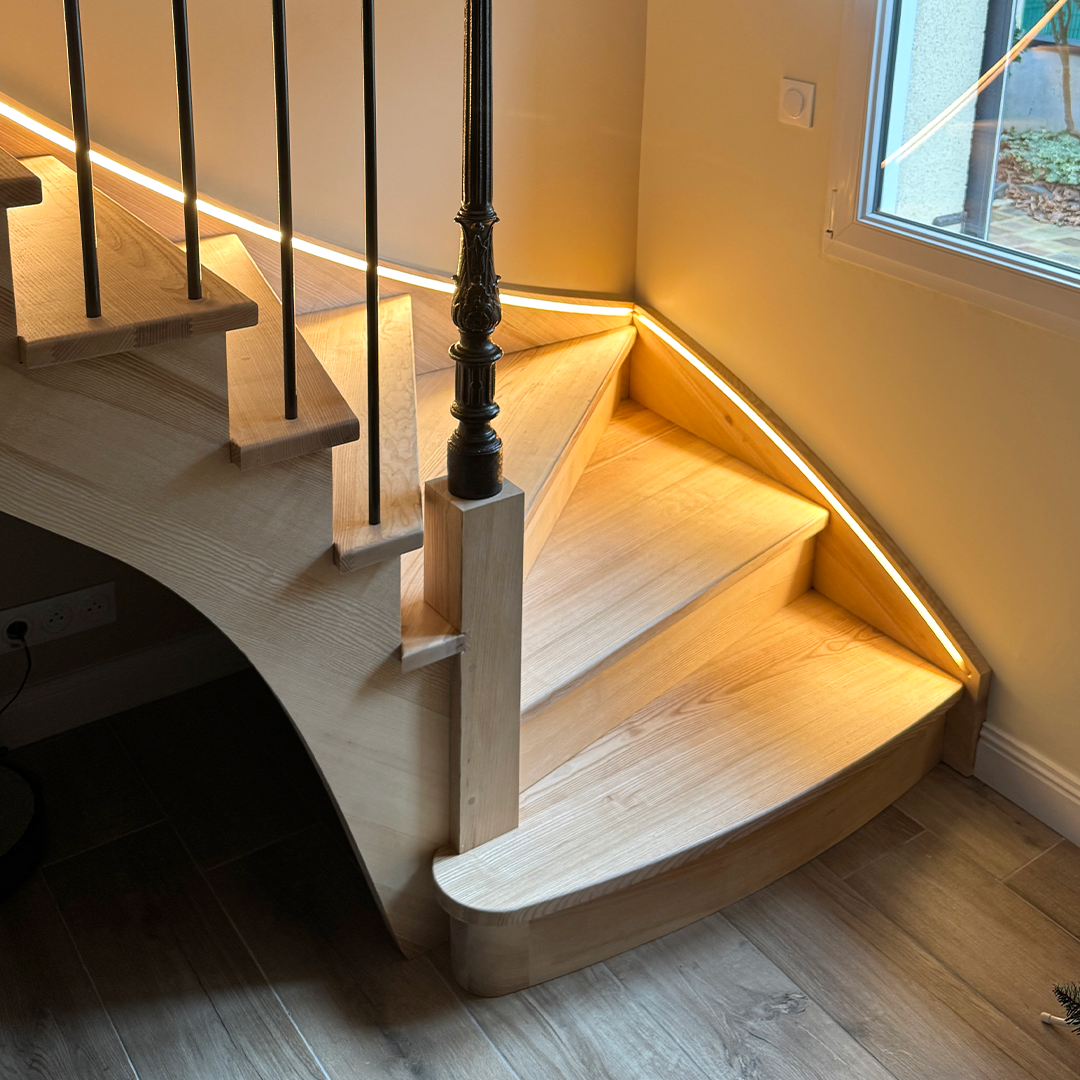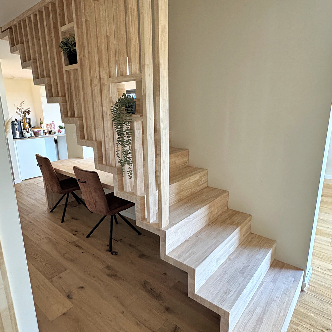 Cette transformation illustre parfaitement notre approche du sur-mesure : savoir valoriser un escalier existant tout en lui donnant nouvelle esthétique et fonction, grâce au bois et à un design étudié.
